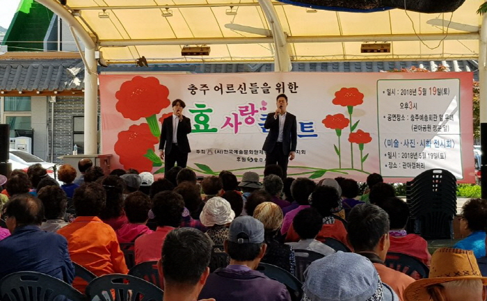 2018년 5월19일(토) 충주예총 앞 무대에서 충주 어르신들을 위한 효사랑콘서트가 진행되었습니다.