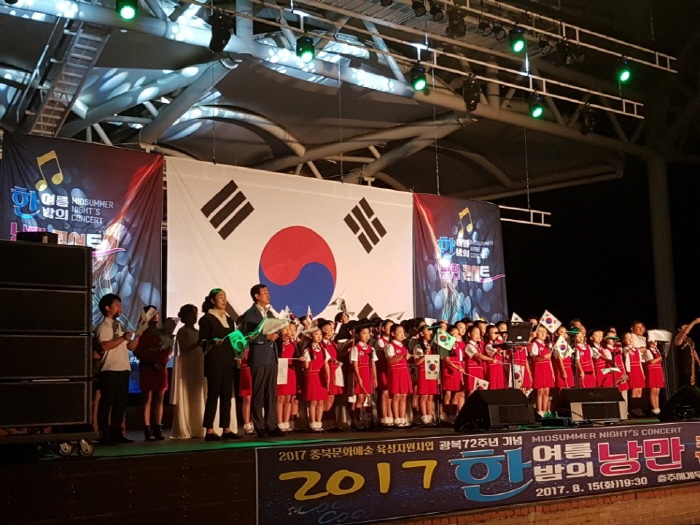 2017 한여름밤의 낭만콘서트 작성자 위드다임 등록일자 2020년 9월 9일 17시 15분 5초 조회 205 2017년 8월 15일 충주세계무술공원에서 광복 72주년 기념 한여름밤의 낭만콘서트가 진행되었습니다.시민들에게 즐겁고 다양한 공연을 선사하고 다시한번 광복의 의미를 새기는 뜻깊은 자리였습니다. 87_낭만콘서트1.jpg [ Size : 276.02KB, Down : 254 ] 미리보기 다운로드 87_낭만콘서트2.jpg [ Size : 285.43KB, Down : 260 ] 미리보기 다운로드 목록보기
