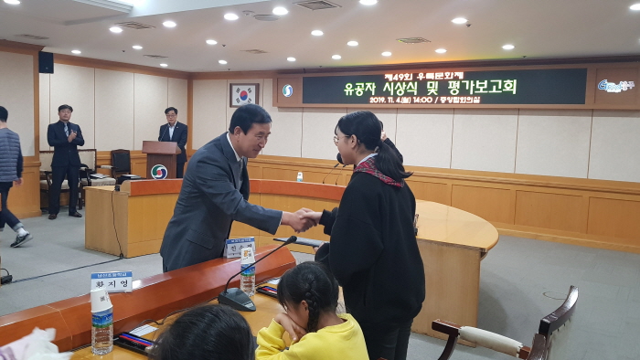 2019년 11월 4일 충주시청 중앙탑회의실에서 제49회 우륵문화제 평가보고회 및 유공자 시상식이 진행되었습니다.