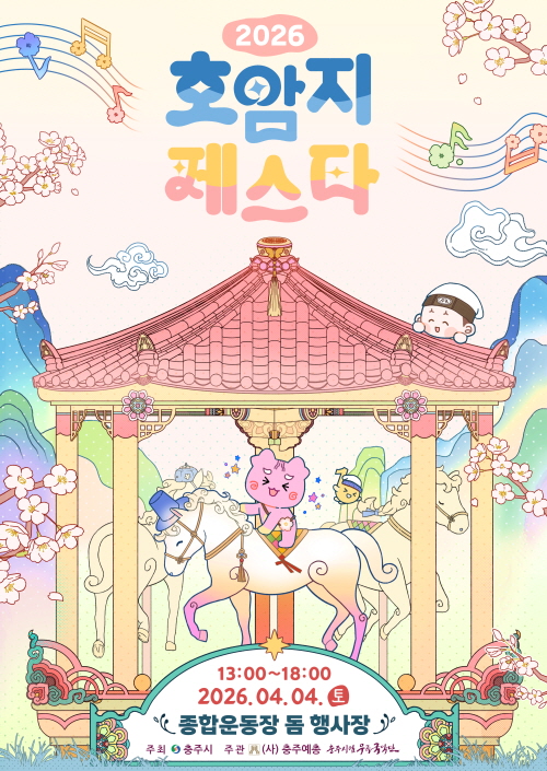 공지 2026 호암지페스타 프로그램 안내 작성자 운영자 등록일자 2026년 4월 1일 10시 5분 42초 조회 23 2026 호암지페스타가 4월 4일(토) 오후 1시 충주종합운동장 돔 행사장에서 개최됨을 알려드리며우천시에도 진행되오니 많은 관심 바랍니다. 수정00.호암지페스타.jpg [ Size : 353.4KB, Down : 11 ] 미리보기 다운로드 리플렛_인쇄-01.jpg [ Size : 1.05MB, Down : 14 ] 미리보기 다운로드 리플렛_인쇄-02.jpg [ Size : 1.08MB, Down : 14 ] 미리보기 다운로드 목록보기