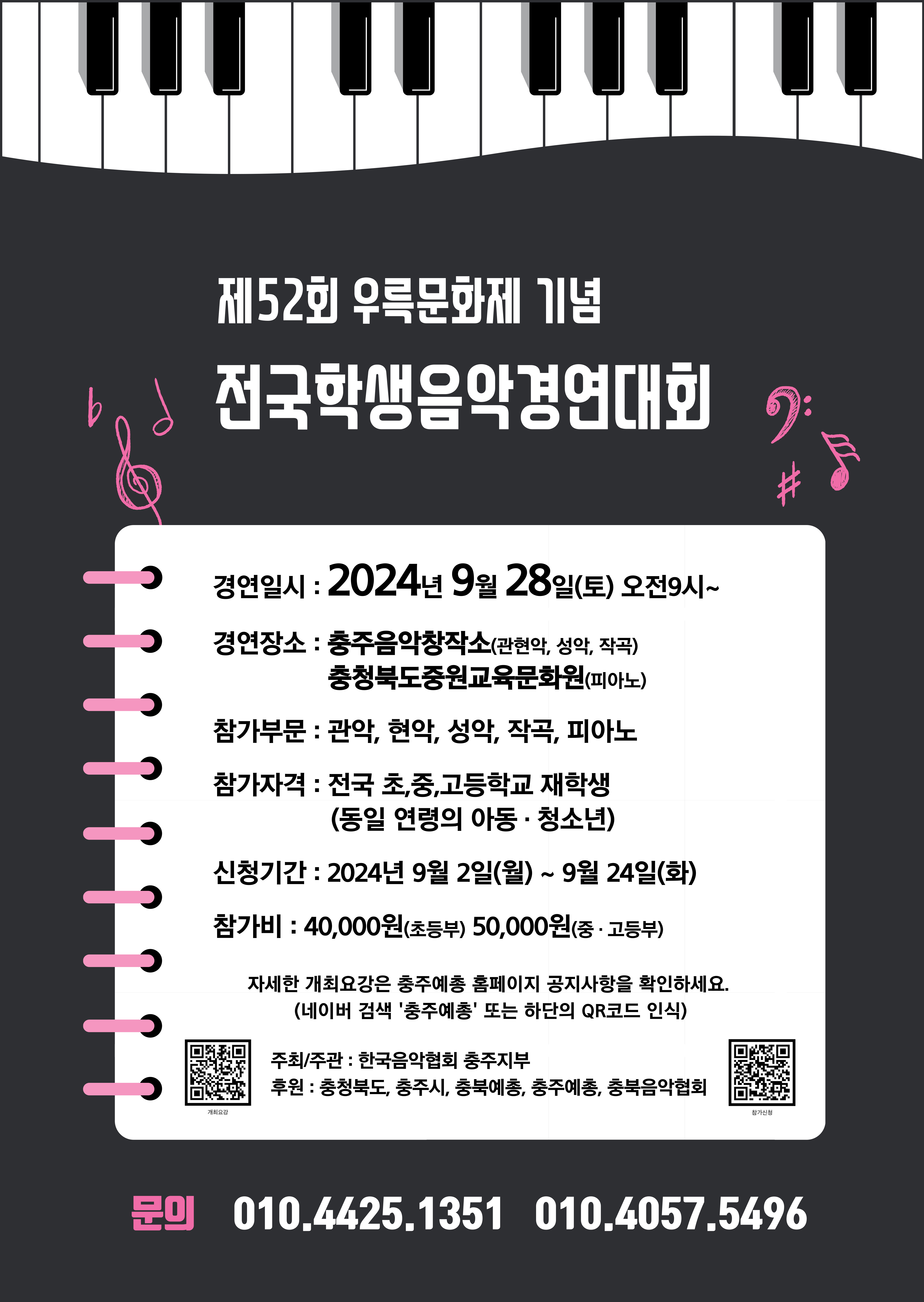 제52회 전국학생음악경연대회 수상내역 안내 작성자 운영자 등록일자 2024년 9월 30일 9시 50분 53초 조회 840 ※ 자세한 수상내역은 하단의 파일을 다운로드받아 확인해주시기 바랍니다. 전국학생음악경연대회 포스터 .jpg [ Size : 1.57MB, Down : 335 ] 미리보기 다운로드 제52회 우륵문화제 기념 전국학생음악경연대회 수상 내역.pdf [ Size : 65.42KB, Down : 1,660 ] 다운로드 목록보기