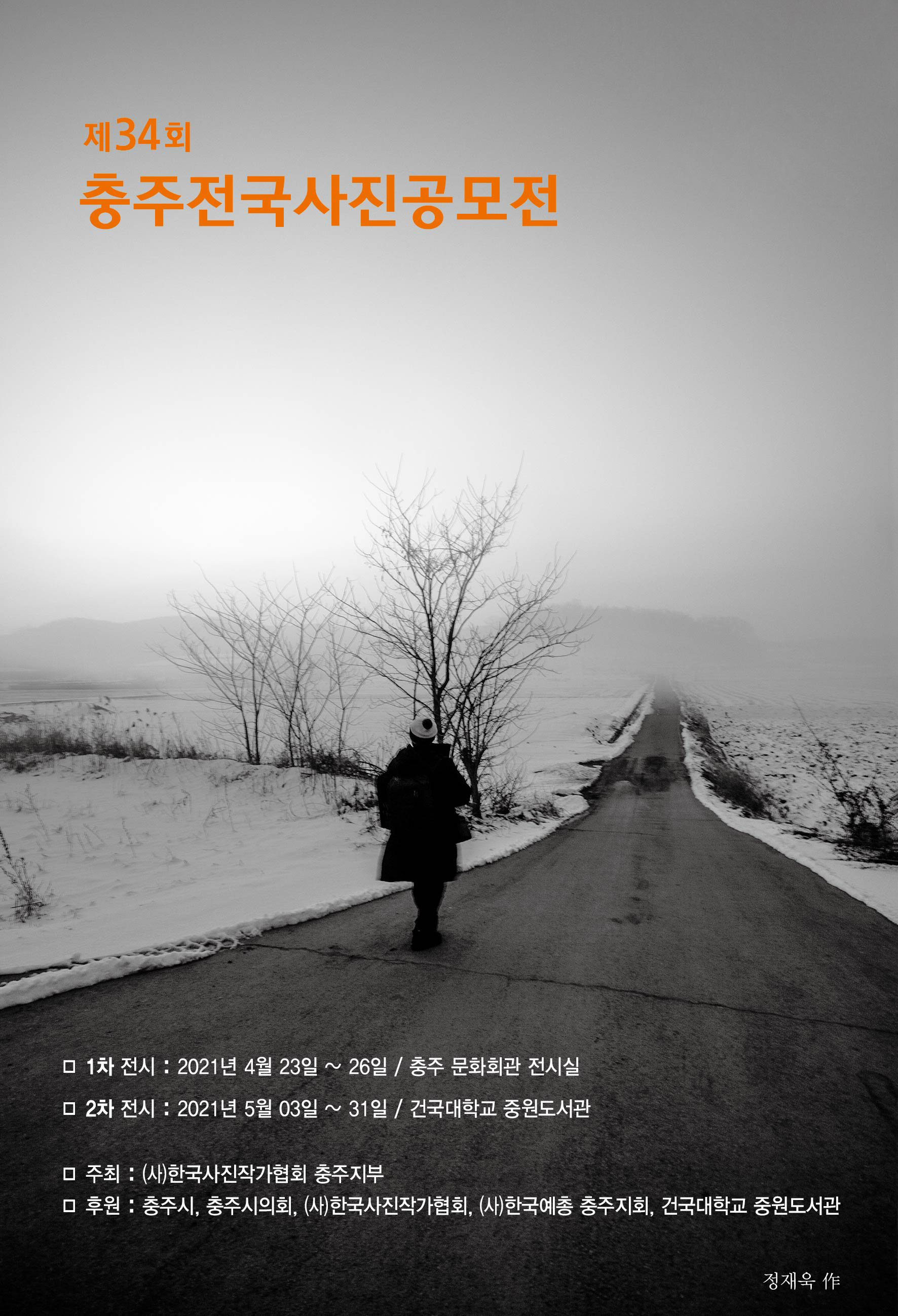 【전시】제34회 충주전국사진공모전 수상작 전시회 장소 충주시 문화회관 전시실 기간 2021년 4월 23일 ~ 2021년 4월 26일 공연시간 입장권 가격 없음 관람등급 전체연령가 문의 제34회 충주전국사진공모전수상작 전시회 충주전국사진공모전.jpg [ Size : 1.06MB, Down : 201 ] 미리보기 다운로드 목록보기